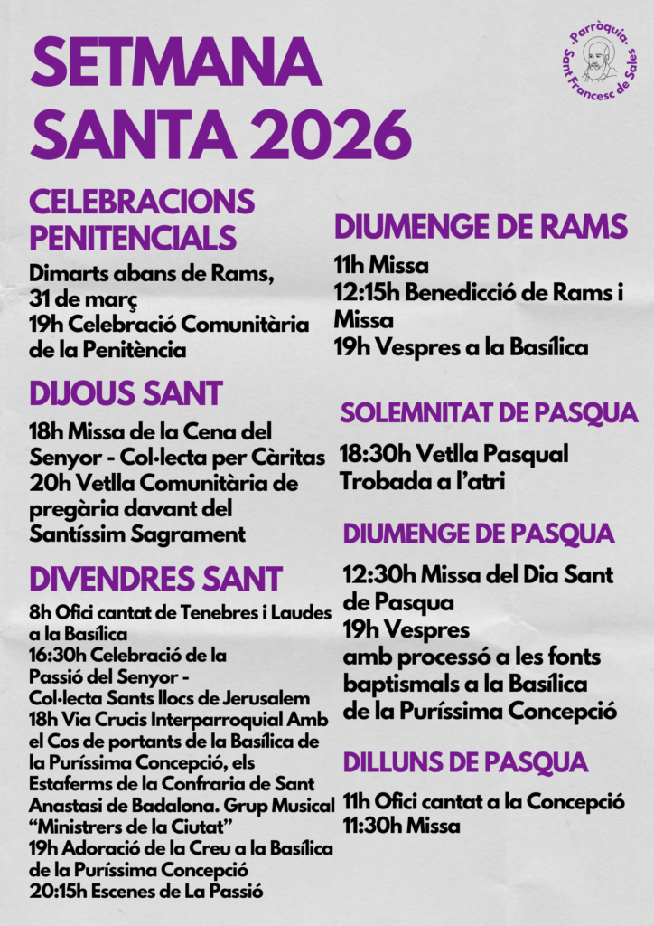 Horaris Setmana Santa i Pasqua 2026: